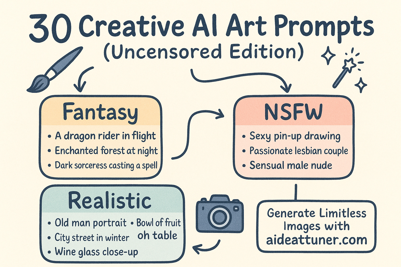 Explore 30 creative prompt ideas for your AI art generator uncensored tools. Get realistic, wild, and boundary-pushing inspiration for free image generation.