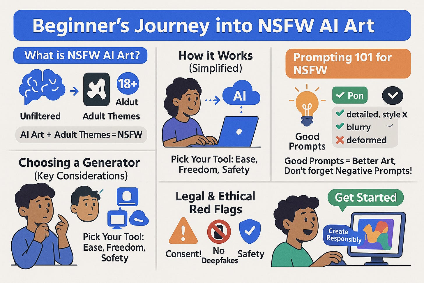 New to NSFW AI art generators? Discover how to start, stay safe, and create stunning AI-generated NSFW images—perfect for curious beginners.